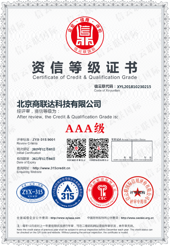 近日,商联达顺利通过AAA信用体系认定,成功斩获“企业信用评价AAA级信用企业”荣誉!这是继商联达荣膺“高新技术企业认证”后的又一殊荣,表明了商联达在信用建设管理方面取得了相关部门及权威机构的肯定。