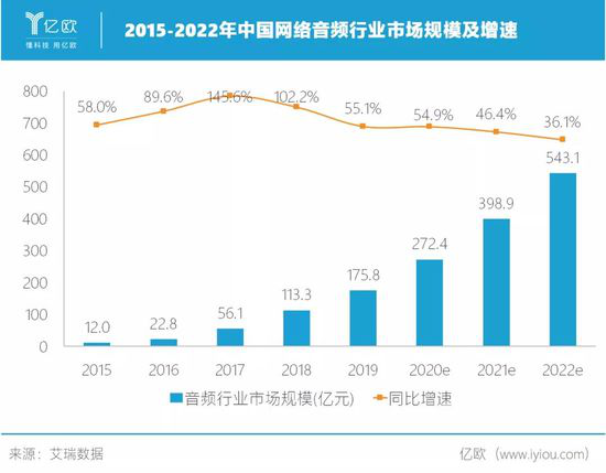 《中国网络音频行业研究报告》预计2020年网络音频行业市场规模达272.4亿元,用户规模将达5.42亿。随着在线音频内容的进一步开放,以及用户场景需求得到进一步挖掘,市场有望保持稳定快速增长态势。