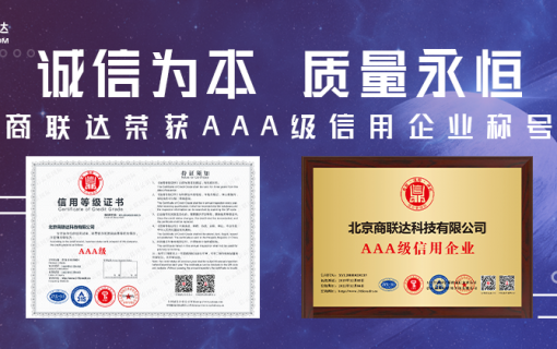近日,商联达顺利通过AAA信用体系认定,成功斩获“企业信用评价AAA级信用企业”荣誉!这是继商联达荣膺“高新技术企业认证”后的又一殊荣,表明...