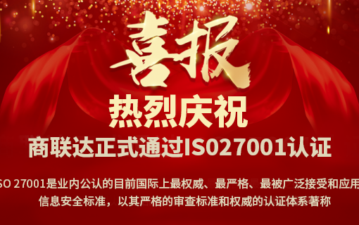 重磅 | 商联达荣获电商服务领域ISO27001信息安全认证证书
